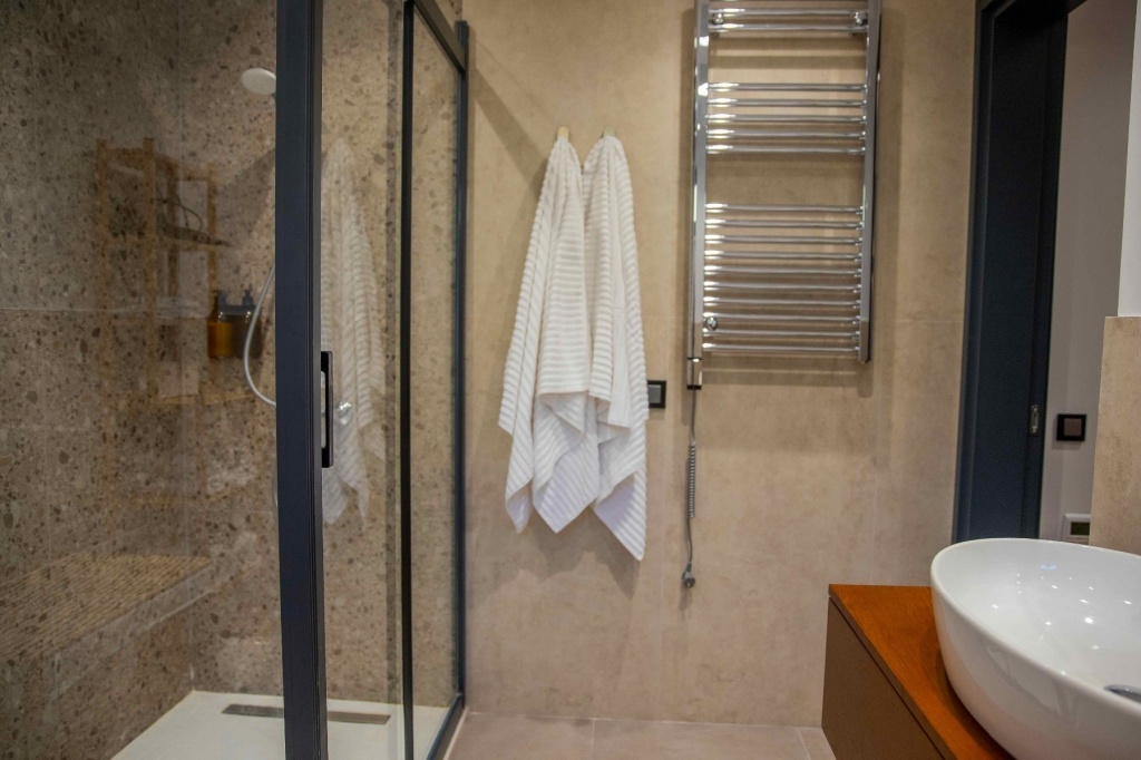 Вилла Триплекс вмещает до семи человек. У нее отдельный вход, кондиционер, гостиная, три спальни и три ванные комнаты с душем и феном. Кухня оснащена плитой, холодильником, посудомоечной машиной и всем необходимым. На террасе с видом на море есть стиральная машина и телевизор с плоским экраном и кабельным телевидением. В апартаментах три кровати.